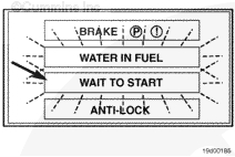 一些車輛還配備“WAIT-TO-START”(等待起動指示燈)和“WATER-IN-FUEL”(燃油含水)指示燈。在寒冷氣候起動時將鑰匙開關(guān)轉(zhuǎn)到 ON(接通)位置進行發(fā)動機預(yù)熱的過程中,等待起動指示燈會點亮。為了減少寒冷氣候中發(fā)動機的起動時間,要等到等待起動指示燈熄滅后方可起動發(fā)動機。