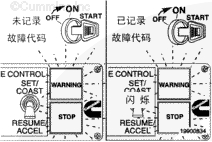 如果有故障代碼,兩個指示燈暫時點亮,然后閃爍記錄的故障代碼。