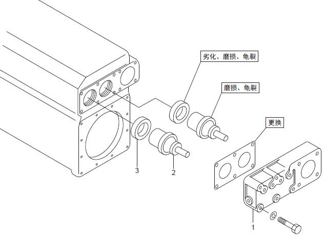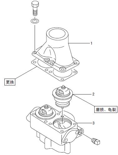 1 三菱S6R發動機恒溫器端蓋  2 三菱S6R發動機恒溫器  3 三菱S6R發動機恒溫器密封