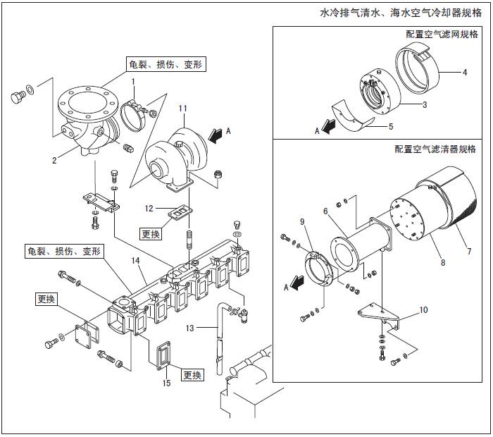1.2 三菱S6R發動機排氣系統的拆卸,檢測
