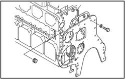 (1) 安裝吊具以免正時齒輪箱掉落。
