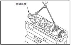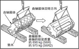 (2) 水平吊起三菱S6R柴油發(fā)動機曲軸,小心地從上方吊出。