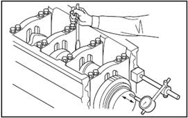 檢測要領參考「發(fā)動機本體的組裝」的「測量三菱S6R柴油發(fā)動機曲軸的軸向間隙」項。