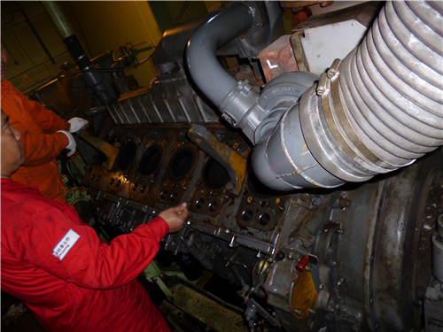 拆卸三菱S6R柴油發(fā)動機主軸承瓦端蓋