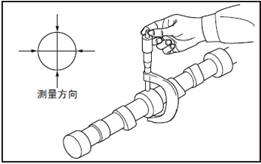 測量三菱S6R柴油發動機凸輪軸頸部正交兩個方向的外徑。超過極限值時更換新的三菱S6R柴油發動機凸輪軸。