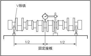 將三菱S6R柴油發動機曲軸的前后端軸頸座在V 型鐵塊上,測量中央軸頸的跳動量。參照標準值,跳動量較小的用研磨方法修正。