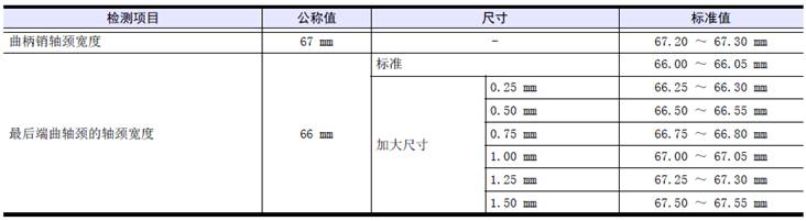 跳動量較大的用壓力器校正。超過極限值時更換新的三菱S6R柴油發動機曲軸。使用研磨或壓力機修理時,要對各部位進行磁性探傷檢查,確認沒有有害的裂痕或損傷。