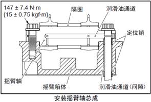 (2) 三菱S6R柴油發(fā)動(dòng)機(jī)搖臂軸的銷孔和定位銷對(duì)準(zhǔn)后,將搖臂總成安裝在搖臂箱體上。