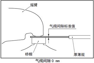 (2) 在搖臂和橋帽之間插入和三菱S6R柴油發(fā)動機氣閥門間隙標準值相同厚度的厚薄規(guī)。( 三菱S6R柴油發(fā)動機氣閥門間隙0 mm)