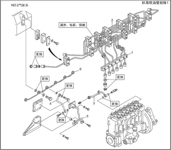 三菱S6R柴油發(fā)動(dòng)機(jī)燃油噴油管、燃油溢流管的拆卸檢測(cè)