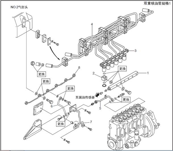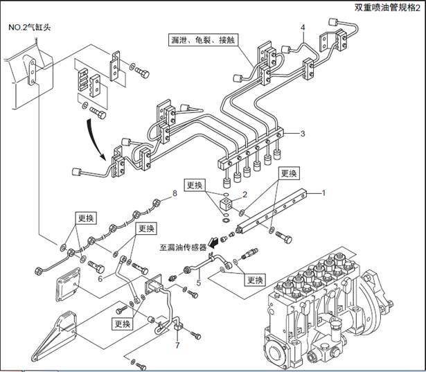 1.1 三菱S6R柴油發(fā)動(dòng)機(jī)燃油噴油管、燃油溢流管的拆卸,檢測(cè)