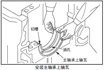 (3) 三菱S12柴油發動機主軸承瓦上軸瓦和三菱S12柴油發動機缸體的嵌槽對準后安裝。