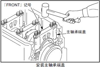 (4) 用軟金屬錘均勻地將三菱S12柴油發動機主軸承瓦端蓋打入。