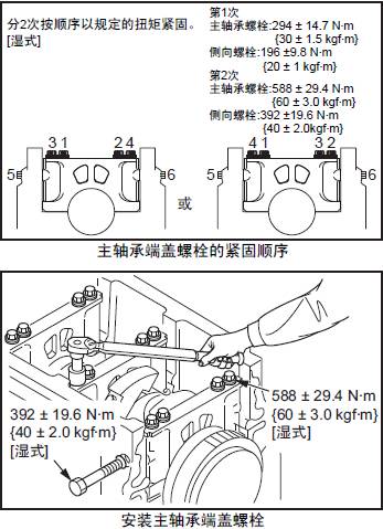 安裝時,三菱S12柴油發動機主軸承瓦端蓋螺栓和側向螺栓必須遵守規定的緊固順序。