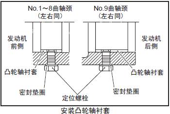 (2) 三菱R16柴油發(fā)動(dòng)機(jī)三菱R16柴油發(fā)動(dòng)機(jī)缸體的定位螺栓孔和三菱R16柴油發(fā)動(dòng)機(jī)凸輪軸襯套的定位螺栓孔對(duì)準(zhǔn)后,安裝三菱R16柴油發(fā)動(dòng)機(jī)凸輪軸襯套,用定位螺栓固定。