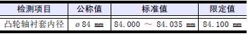 (2) 三菱R16柴油發(fā)動(dòng)機(jī)凸輪軸襯套安裝在三菱R16柴油發(fā)動(dòng)機(jī)三菱R16柴油發(fā)動(dòng)機(jī)缸體的狀態(tài)下,測(cè)量三菱R16柴油發(fā)動(dòng)機(jī)凸輪軸襯套的內(nèi)徑。超過(guò)極限值時(shí)更換新的三菱R16柴油發(fā)動(dòng)機(jī)凸輪軸襯套。