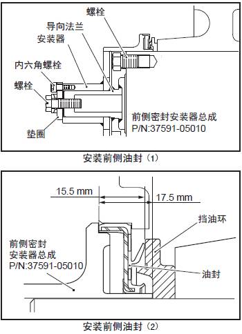 (4) 旋緊導向法蘭上的螺栓,將三菱柴油機油封裝入前端蓋。