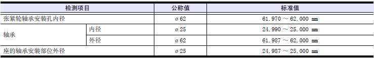 檢測三菱S16柴油機張緊輪和軸的軸承安裝部位,嚴重磨損時更換軸承、三菱S16柴油機張緊輪或三菱S16柴油機張緊輪座。
