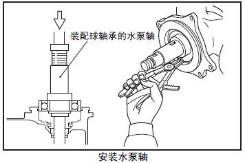 (2) 緩慢地將三菱S16柴油機水泵軸壓入泵體,至球軸承端面和泵體接觸。