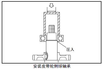 (2) 用壓力機壓入三菱S16柴油機皮帶輪螺帽側球軸承。