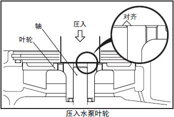 (2) 用壓力機壓入三菱S16柴油機水泵葉輪。這時,三菱S16柴油機水泵葉輪的輪轂端面要和三菱S16柴油機水泵軸的端面平齊。