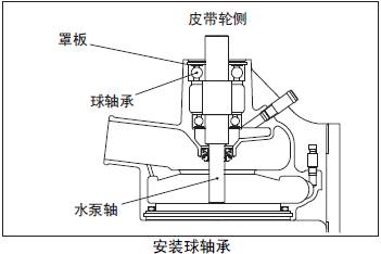(2) 球軸承的罩板側朝向葉輪側,壓入三菱S16柴油機水泵軸。