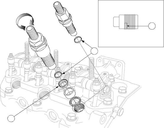 1  Clean and dry the male and female threads of the atomiser and the cylinder head.