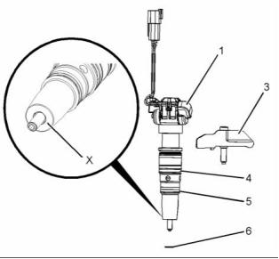 4.  Remove electronic unit injector (1) and clamp