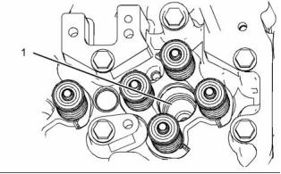 9.  Install bolts (1) and (3). Tighten the  bolts to a