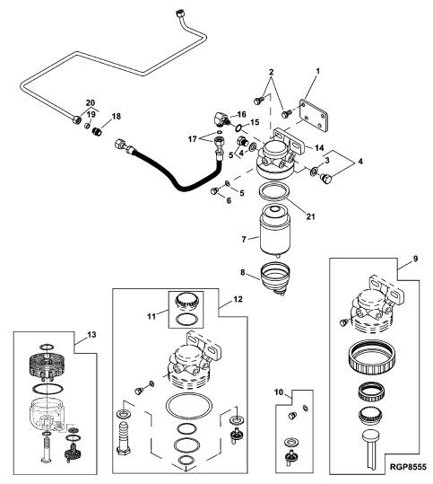 John Deere約翰迪爾強鹿6068 6.8L柴油發動機油水分離器零件圖冊