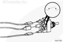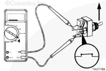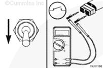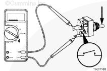 找到最大康明斯ISB5.9 G CM2180 發動機轉速開關。給這些導線貼上帶有開關位置或導線號碼的標簽。從開關上拆下電氣接頭。調整萬用表以便測量電阻。將萬用表一個表筆接觸開關一個端子。將另一根萬用表表筆接觸開關的另一端子。