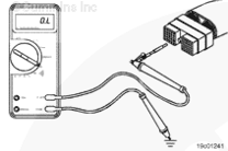 調整萬用表以便測量電阻。將一根測試導線插入 OEM 線束接頭上的最大康明斯ISB5.9 G CM2180 發動機轉速開關信號觸針,然后將其連接到一支萬用表表筆。使萬用表的另一根表筆接觸康明斯ISB5.9 G CM2180 發動機缸體接地。