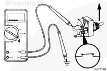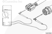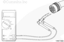 調整萬用表以便測量電阻。將測試導線插入 OEM 線束接頭上的遠程油門開關信號導線,然后將其連接到萬用表表筆。用萬用表的另一根表筆接觸康明斯ISB5.9 G CM2180 發動機缸體接地。測量電阻。