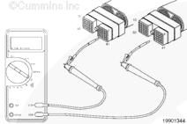 從 ECM 上斷開康明斯ISB5.9 G CM2180 發動機線束康明斯電子控制模塊(ECM) 1 號接頭。從康明斯ISB5.9 G CM2180 發動機線束上斷開變壓器。設置萬用表以便測量電阻。