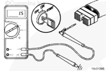 測量從康明斯ISB5.9 G CM2180 發動機線束中的變壓器回路觸針至缸體接地之間的電阻。