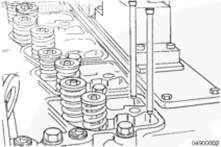 小心地將缸蓋直放于缸體上,并使它座入定位銷中。