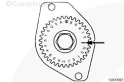 為了精確地使螺釘轉動到要求的角度,使螺釘與螺釘頭上標記的“小圓點”和“窗口”對正,或者使用推薦的扭矩角度計 - 19 mm [3/4-in] 驅動頭(零件號 3823878)或等同物。