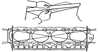 用直尺和厚薄規(guī)檢查氣缸體上平面的不平度,如果平面誤差超過規(guī)定時,應進行修磨。氣缸體上平面翹曲應小于0.05mm,使用限度為0.20mm。