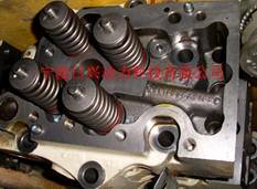 1)檢查氣缸蓋有無裂紋,用染色滲透法,檢查燃燒室、進(jìn)氣口、排氣口、氣缸蓋表面和氣缸蓋頂部有無裂紋,如有裂紋,應(yīng)更換氣缸蓋。