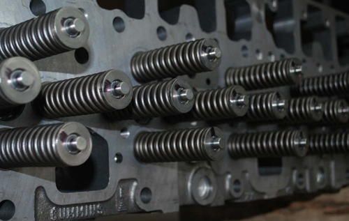 一、康明斯柴油機(jī)氣缸蓋的檢修:康明斯B系列專用柴油機(jī)采用整體式氣缸蓋,用優(yōu)質(zhì)灰鑄鐵鑄造 而成。氣缸蓋上布置有進(jìn)、排氣道及冷卻水道,安裝的零件有進(jìn)、排氣門、搖臂總成、噴油器、節(jié)溫器、排氣管、氣門室罩等。