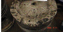 (1)現象:活塞頂部金屬產生層層剝落使頂部厚度逐漸減薄,出現釩腐蝕的麻點或凹坑,大小、深淺不一地分布于活塞頂部,這種現象稱為活塞頂部燒蝕。嚴重時可使頂部燒穿。