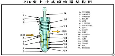 康明斯柴油發動機PT(D)型噴油器原理圖: