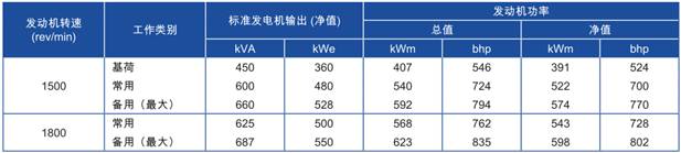 功率:于1500 rev/min時,574kWm