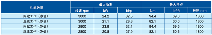 3000 rpm時(shí),功率達(dá)24 kW,32.5 bhp
