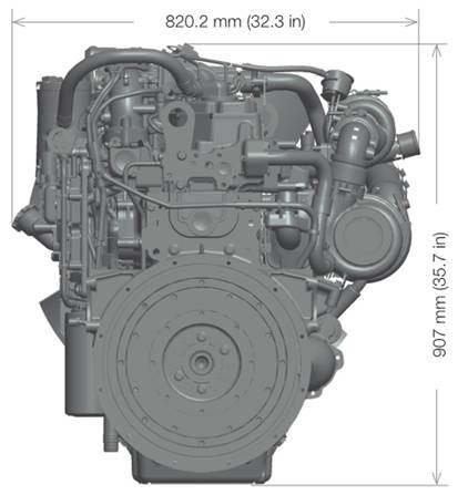 1206F各型號均為空氣對空氣中冷、7升排量的6缸發動機,可配備單級目輪增壓器或串聯雙級目輪增壓器,輸出功率最高可達225kW (301 8hp)。發動機的高功率密度,結合其出色的扭矩,使之前需采用較大氣缸容積發動機的設計制造商可轉為選擇這機型。縮小機體的尺寸不但有助節約成本,更方便騰出更多空間來配裝新設計的后處理系統。