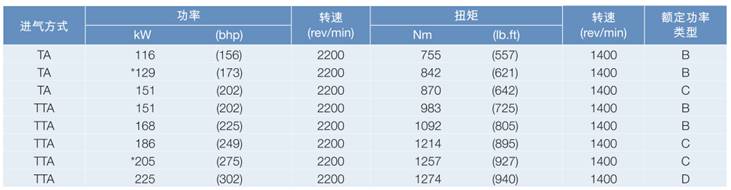 柴油發動機功率數據的測定條件,排量7.1升或以下均采用IS0/TR143961標準,進氣標準測定條件為大氣壓力100kPa蒸汽壓力1 kPa溫度25'C。測定性能時,發動機使用的燃油符合美國環保局2D 89.330--96規格:密度為0.845