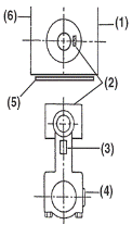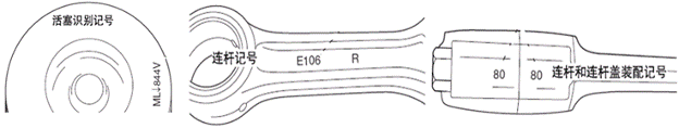 當活塞裝配正確時,刻印在連桿頂部的標識 會和刻印在連桿上連桿和連桿蓋的裝配記號處于同一側。(106T系列除外)