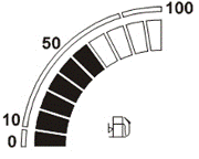 監控儀表工作顯示界面直觀顯示發動機燃油油位,如圖所示。顯示范圍為0~100%十段,可根據段位監控燃油油位。如要查看具體精確數值,請參閱運行參數。