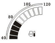 監控儀表工作顯示界面直觀顯示發動機冷卻液溫度,如圖所示。顯示范圍為40℃~120℃十段,可根據段位監控冷卻液溫度。如要查看具體精確數值,請參閱運行參數。
