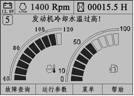 如果冷卻液溫度達到103℃,約10秒鐘后,監控儀表提示“發動機冷卻水溫過高!”文字報警,同時蜂鳴器鳴叫,如圖所示。